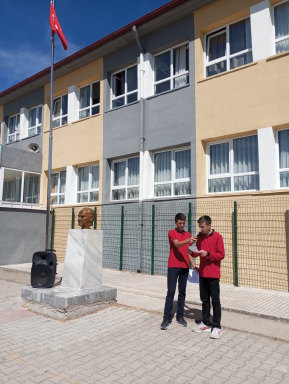 Okulumuzda, 2025-2026 eğitim öğretim yılının başlangıcını simgeleyen İlköğretim Haftası, Ayşenur AKBAŞLI ve Yasin ÇAKIR öğretmenlerimizin rehberliğinde, tüm öğretmen ve öğrencilerimizin katılımı ile kutlandı. Öğrenciler, öğretmenler ve katılımıyla gerçekleşen Tören, Ulu Önder Mustafa Kemal Atatürk ve silah arkadaşları anısına yapılan saygı duruşu ve İstiklal Marşı’nın okunmasıyla başladı. Ardından müdür yardımcımız Emine ÇELEBİ'nin yaptığı konuşmada eğitimin birey ve toplum gelişimindeki rolünü vurguladı. Kutlamalar kapsamında öğrencilerimiz günün anlamına yönelik konuşmalar ve şiirler okudular.